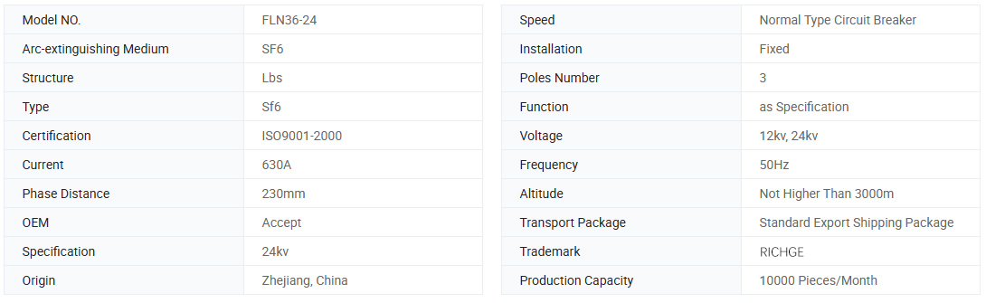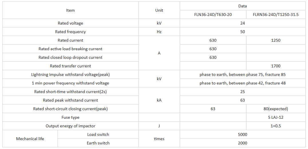 Az FL (R) N36 beltéri AC nagyfeszültségű SF6 terhelési töréskapcsolót és az LBS-FUSE kombinációt háromfázisú AC 50/60 Hz-es RMUS (Ring Főegységek) és a terminális erőművek felhasználására tervezték. Ezek a kapcsolók alkalmasak a 10 kV, 24kV és 35 kV-os üzemeltetésű energiarendszerek védelmére terhelés körülmények között. Képesek megszakítani a betöltési áramot, a zárt hurkú áramot, a terhelés nélküli transzformátor kapacitását és a kábel töltési áramát. Ha biztosíték kombinációval van felszerelve, akkor megszakíthatják a besorolt rövidzárlat-törésáram tartományán belüli bármilyen áramot. Ezek az eszközök többek között az RMUS -ban és a kombinált transzformátorokban találnak alkalmazást.