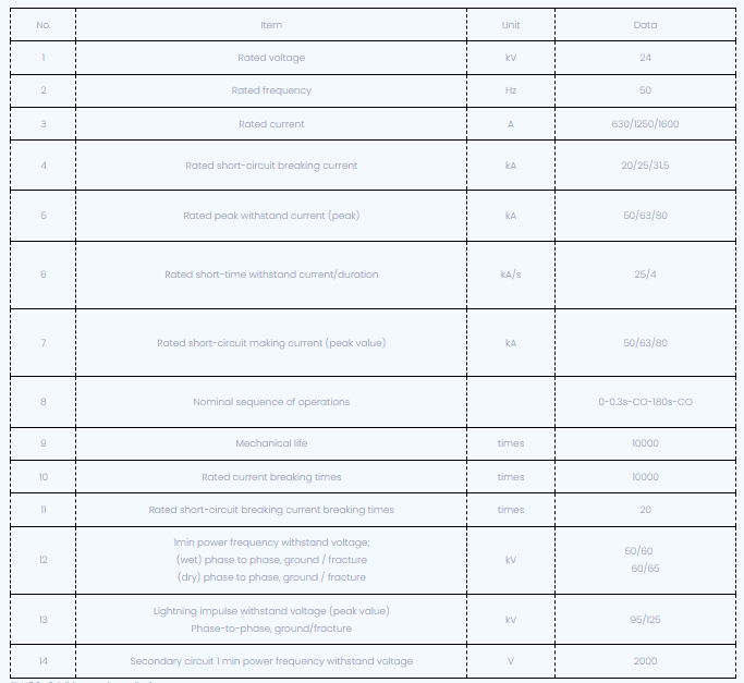 A megszakító megfelel a műszaki előírásoknak, például a GB1984-2003 nagyfeszültségű AC megszakító, DL T402-2007 technikai feltételek a nagyfeszültségű AC megszakító és a DL / T403-2000 műszaki feltételek megrendelésére 12 kV ~ 40,5 kV nagyfeszültség-vákuum-megszakító megrendeléséhez.