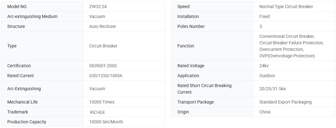 Felszerelhető egy rugós működési mechanizmussal, amelynek alapvető funkciói vannak, például a terhelési és záró terhelési áram, a túlterhelés áram és a rövidzárlat. Ez a ZW32-24 sorozat alaptípusa. A megszakító és az izoláló kapcsoló kombinálható egy "kombinált megszakító" (a továbbiakban: "kombinált megszakító"), különálló töréssel. Az elszigetelő kapcsolón a felhasználó dönthet úgy, hogy a szilikon gumi szigetelő hüvelyt használja, amelynek tulajdonságai az eső, a hó, a homok, a homok, valamint a korrózió jellemzői, és hatékonyan elkerülhetik az izoláló kapcsoló fagyasztását és oxidációját.