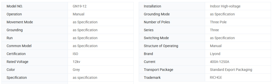 A GN19-12 sorozatú beltéri nagyfeszültségű megszakító kapcsoló a nagyfeszültségű kapcsoló berendezésekhez tartozik, 12KV, AC 50Hz és annál kisebb névleges feszültségű áramellátó rendszerre vonatkozik, CS6-1 kézi működtető mechanizmussal van felszerelve, és terhelés nélküli, de feszültség alatti áramkör megszakítására és létrehozására szolgál. Vannak további szennyezéscsökkentő típusok, nagy magasságú típusok és elektromos kijelzők.