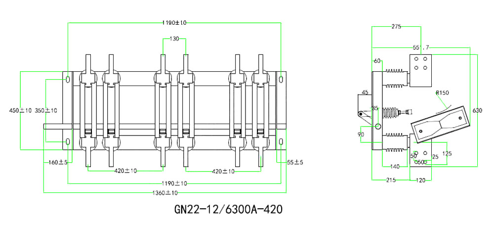 Ez a termék egy nagyáramú, izoláló kapcsoló, háromfázisú közös alsó kés szerkezetével. Mechanikus reteszelő prototípust fogad el, kétlépéses hatással a bezárás és az érintkezés, a kopásmentes érintkezés, a kis működési erő, a magas érintkezési nyomás és a jó dinamikus hőstabilitás elérésével.