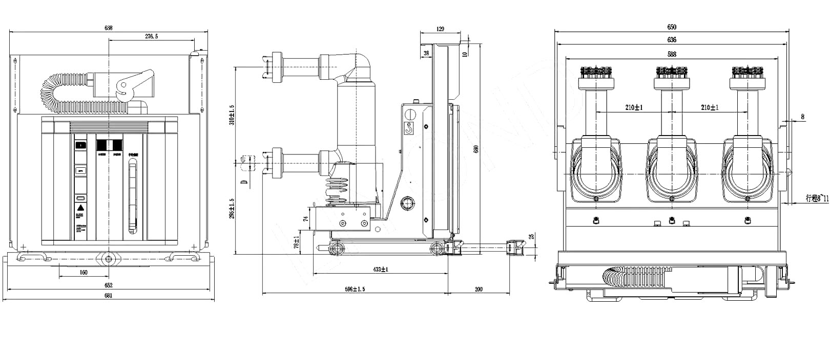A VSG-12/2000a méreteinek mérete a kézi kocsi típusú vákuummegszakító rögzített oszlopokkal