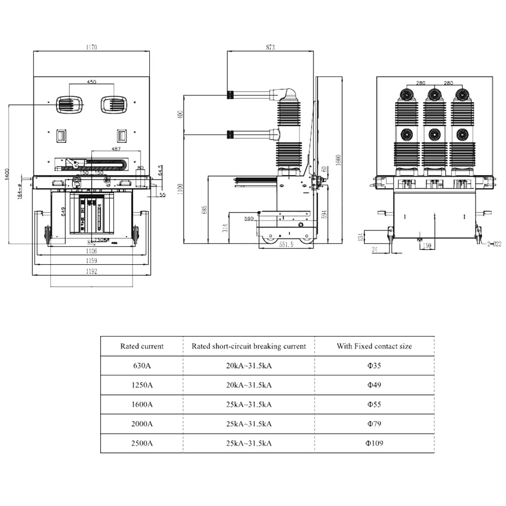 A VSG-40.5 sorozatú vákuum-megszakító az egyedi tervezési koncepció szerint, a piaci kereslethez és fejlesztéshez kombinálva, a beltéri kapcsolóberendezések névleges feszültségével és a fejlődésre kombinálva, az ipari és bányászati vállalkozásokhoz, az erőműnek és az alállomásnak az elektromos berendezések ellenőrzésére és védelmére vonatkozóan biztosítható.